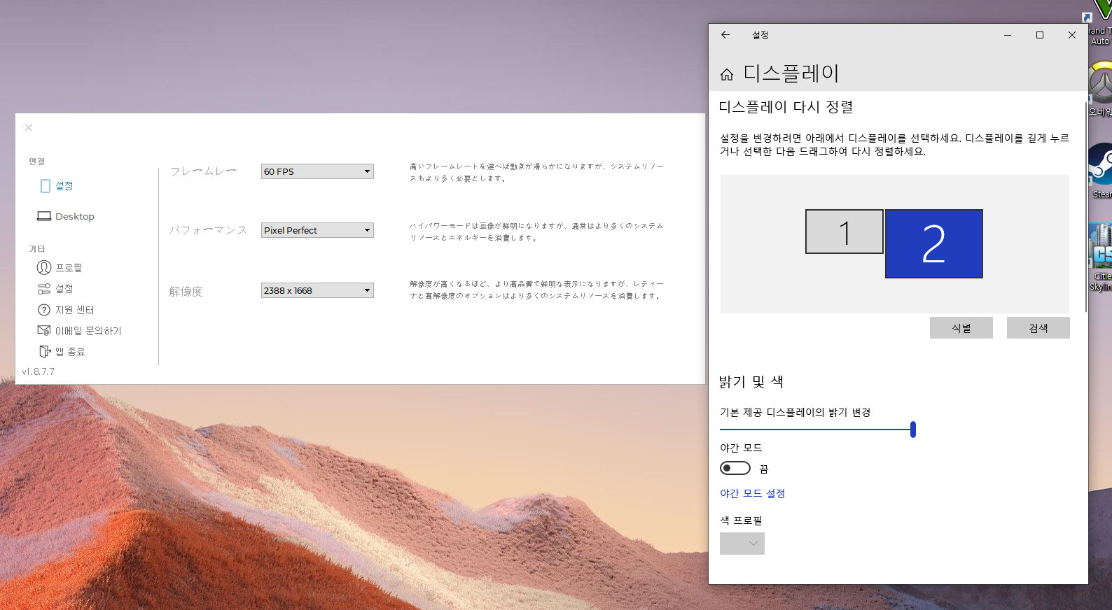 하지만 우리가 일반적으로 모니터를 연결했을 시 느껴지는 느낌은 아니다. 추가 모니터 화면을 0.01 초 늦게 스트리밍 하는 느낌? 마우스를 조작하는 느낌은 분명 이질적이다. 내 생각엔 꾸준히 옆에 띄워두고 사용하는 원노트 라던지.. 팟플레이어를 띄워 둔다던지 하는 보조적인 역할에는 충분해 보인다.