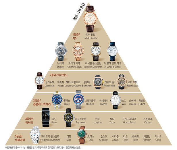 혹시 인터넷에 떠도는 시계계급도 라는 길고 긴 테이블을 본적이 있을 것이다. 시계의 끝판왕인 오데마피게 나 파텍필립 부터 롤렉스 오메가 브라이틀링 테그호이어 론진 해밀턴 등 수백만원대 초반까지의 여러 제품들의 계급을 디시인사이드 같은 곳에서 재미로 만든 계급도였다. 그만큼 세계 시계 시장에는 만원짜리 부터 수백억 대의 시계까지 촘촘하게 브랜드가 있는 참 신기한 시장이다. 같은 기능을 가지고 있는데도 말이다.